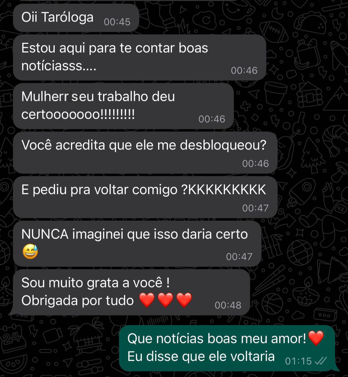 Minhas leituras são sempre feitas com sensibilidade e dedicação, focadas em trazer clareza e serenidade à sua vida. Estou aqui para te ajudar a desvendar os caminhos que o universo tem preparado para você, oferecendo percepções valiosas para decisões mais conscientes e assertivas.